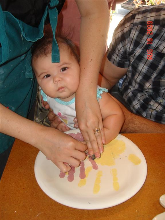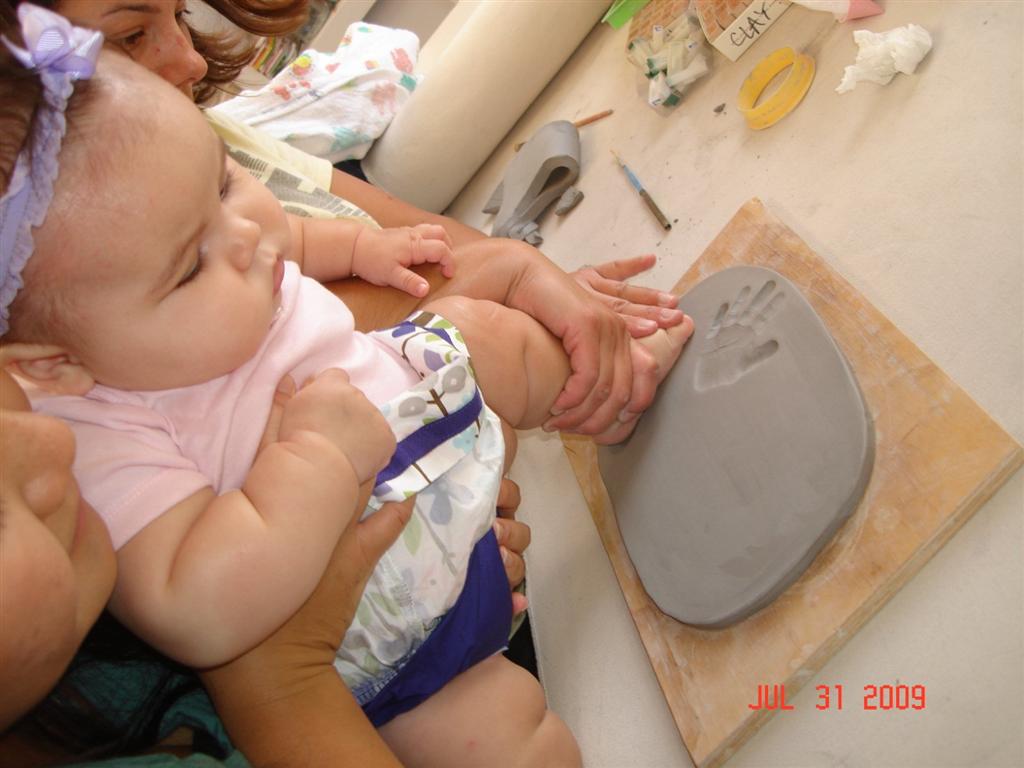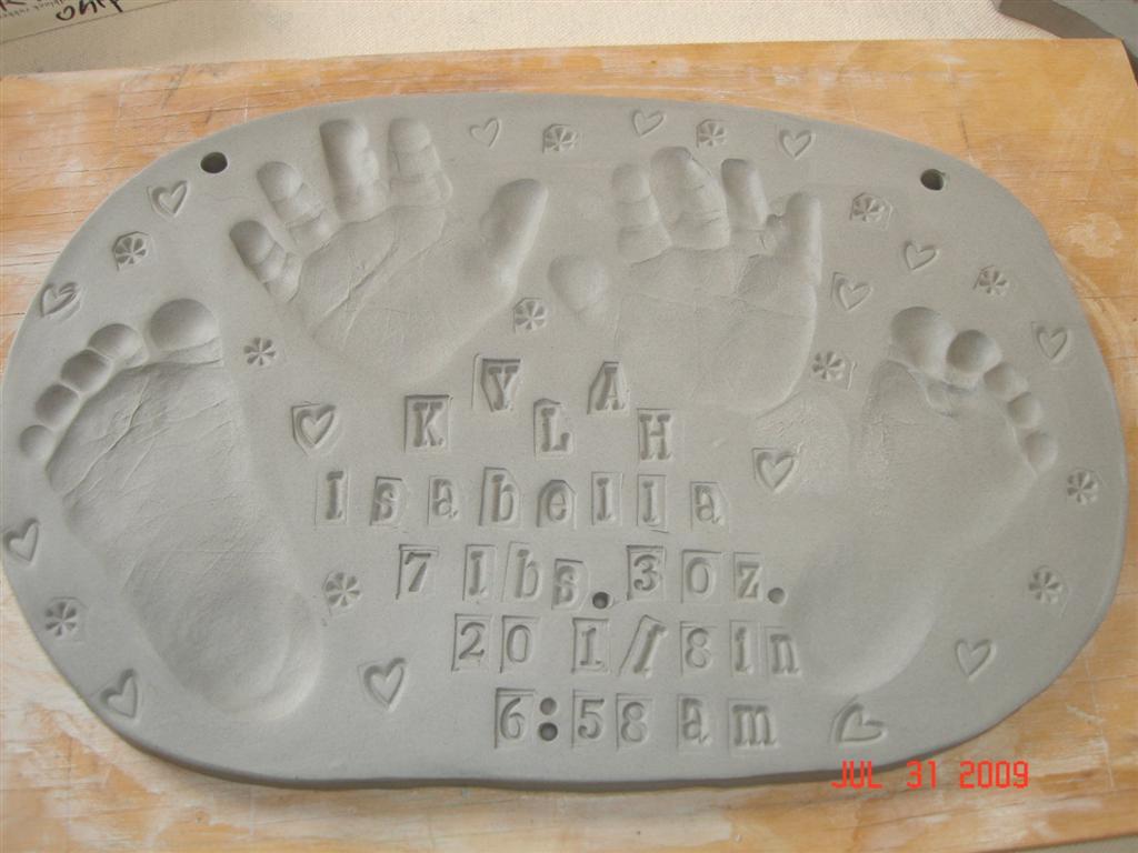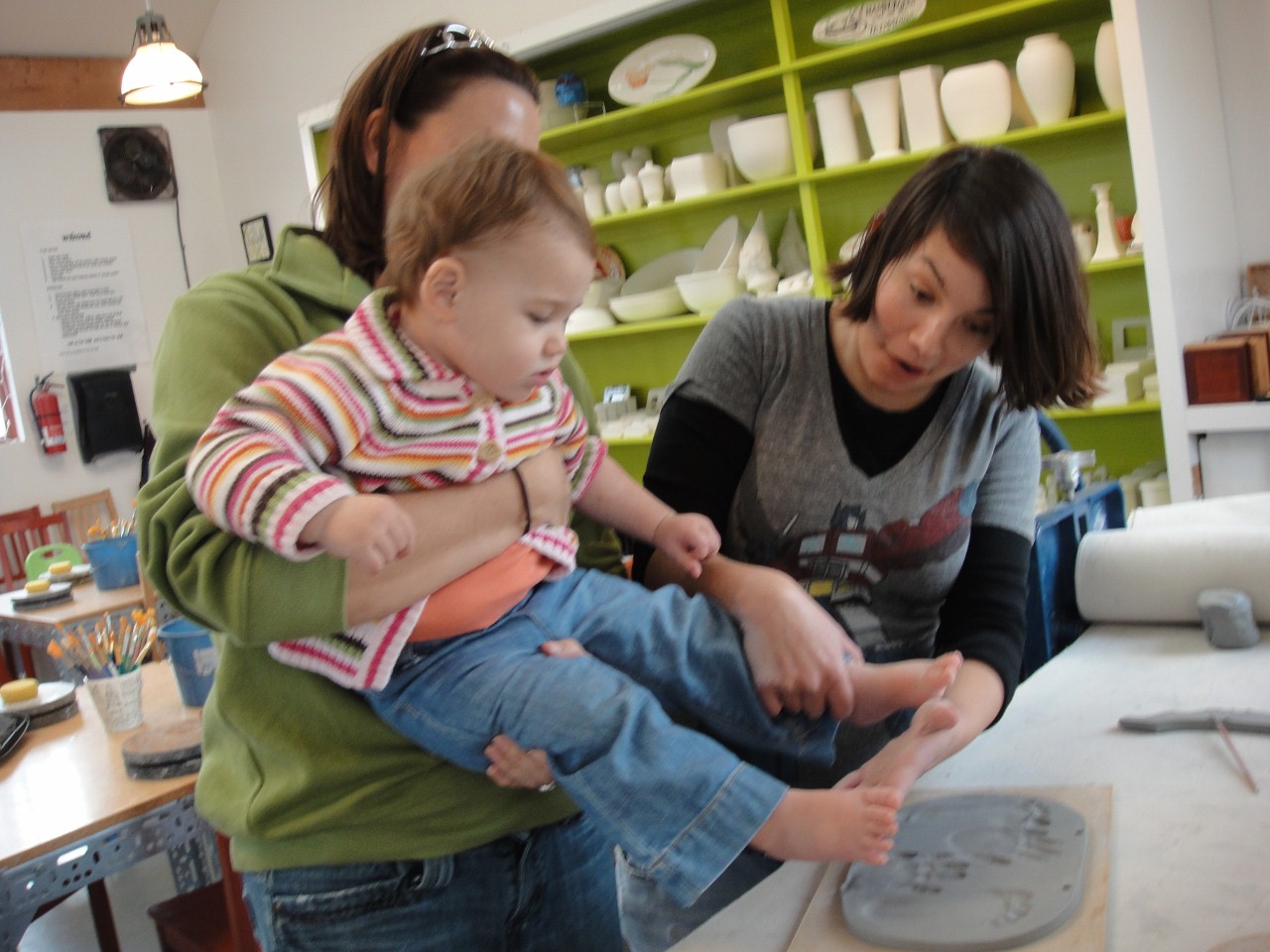 Makes great gifts! Stay after and capture your little ones hands and feet on pottery